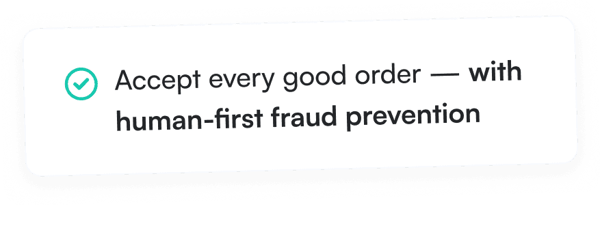 We flipped the model so you get Every. Good. Order: Our software never declines an order — only human fraud experts do, after a careful review.